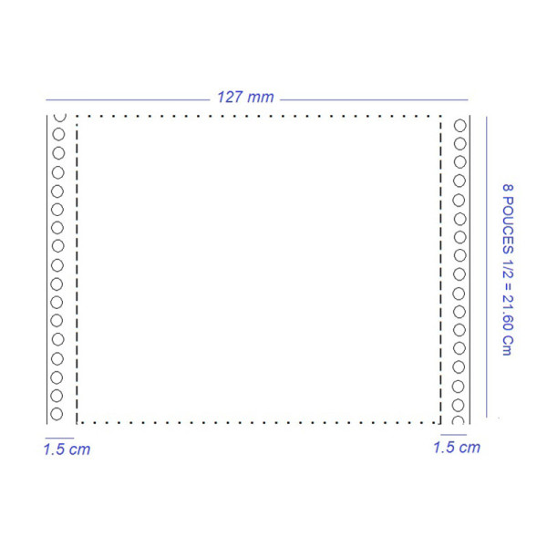 Les listings de pesée 127mmx8" 1/2 2 plis sont munis de bandes caroll détachables perforées qui facilitent l'alimentation continue du papier dans les imprimantes matricielles ainsi qu’une découpe facile après leur impression.